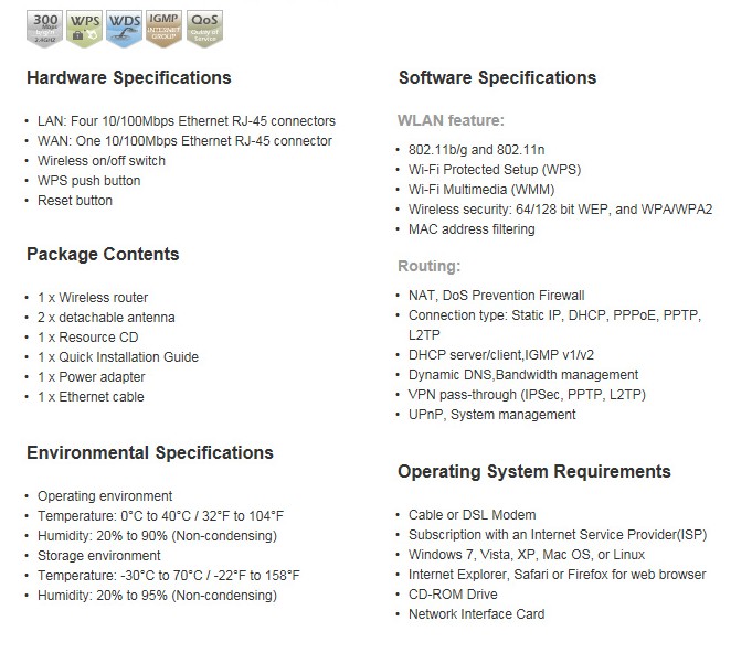 FWR724ND Wireless Router 300Mbps wifi detachable antenna